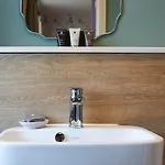 Το μπάνιο με ντους και μπανιέρα είναι επίσης εξοπλισμένο σεσουάρ και πετσέτες.